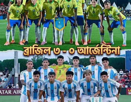 সিএনএম ডেস্কঃ দক্ষিণ আমেরিকান অনূর্ধ্ব-১৭ চ্যাম্পিয়নশিপে চিরপ্রতিদ্বন্দ্বী আর্জেন্টিনাকে ৩-০ গোলে উড়িয়ে দিয়ে অনূর্ধ্ব-১৭ বিশ্বকাপের টিকিট নিশ্চিত করেছে ব্রাজিল অনূর্ধ্ব-১৭ ফুটবল দল। শুক্রবার (১০ এপ্রিল) দিবাগত রাতে প্যারাগুয়ে-এর ভিলেতো শহরের এস্তাদিও আমেলিয়ানো ভিলেতো স্টেডিয়ামে অনুষ্ঠিত ম্যাচে শুরু থেকেই আধিপত্য দেখায় ব্রাজিল। আক্রমণাত্মক ফুটবল, দ্রুত পাসিং ও উচ্চ প্রেসিংয়ে প্রতিপক্ষকে চাপে রাখে তারা। প্রথমার্ধেই ম্যাচের নিয়ন্ত্রণ নিজেদের বিস্তারিত