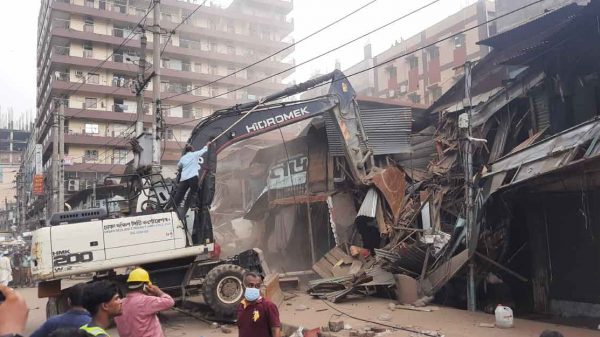 রাজধানীর গুলিস্থানের বঙ্গবন্ধু এভিনিউ হকার্স মার্কেটে অবৈধ দোকান উচ্ছেদ অভিযান পরিচালনা করছে ঢাকা দক্ষিণ সিটি করপোরেশন (ডিএসসিসি)। রোববার (৮ মে) দুপুরের দিকে গুলিস্থানের হকার্স মার্কেটের অবৈধ অস্থায়ী দোকান উচ্ছেদ অভিযান