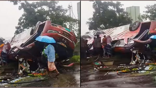 চট্টগ্রামের মিরসরাইয়ে স্বাধীন বাংলা পরিবহনের একটি বাস উল্টে দুই যাত্রী নিহত হয়েছেন। আহত হয়েছেন আরও বেশ কয়েকজন। বুধবার ( ৪মে) সকাল ১০টার দিকে ঢাকা- চট্টগ্রাম মহাসড়কের ঢাকামুখী লেনের বড় কমলদহ