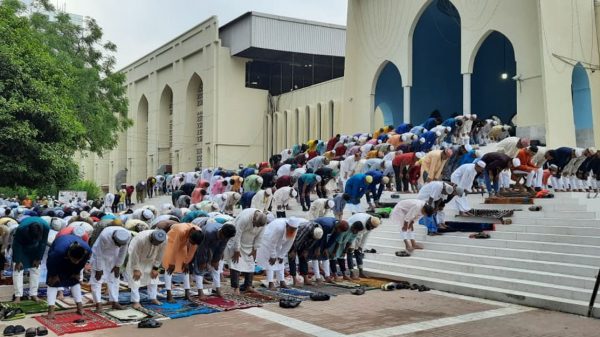 জাতীয় ঈদগাহে সকাল সাড়ে ৮ টায় ঈদের প্রধান জামাত অনুষ্ঠিত হয়েছে। জামাত শেষে মোনাজাতে বাংলাদেশবিরোধী ষড়যন্ত্র নস্যাতের প্রার্থনা করা হয়। এতে ইমামের দায়িত্ব পালন করেন বায়তুল মোকাররম জাতীয় মসজিদের খতিব