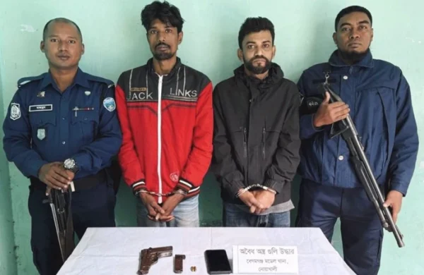 সিএনএমঃ নোয়াখালীর বেগমগঞ্জের চৌমুহনী বাজারের একটি আবাসিক হোটেল থেকে বিদেশি পিস্তল ও গুলিসহ দুইজনকে গ্রেপ্তার করেছে পুলিশ। শুক্রবার (০২ জানুয়ারি) দুপুরে বিষয়টি নিশ্চিত করেন বেগমগঞ্জ থানার ভারপ্রাপ্ত কর্মকর্তা (ওসি) এম