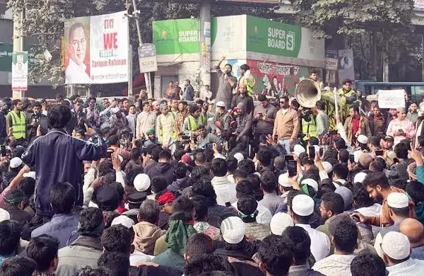 সিএনএমঃ শহীদ শরিফ ওসমান হাদি হত্যার বিচারের দাবিতে শাহবাগ অবরোধ করেছে ইনকিলাব মঞ্চ। শুক্রবার (২৬ ডিসেম্বর) জুমার নামাজের পর ইনকিলাব মঞ্চের নেতাকর্মীসহ সাধারণ শিক্ষার্থী-জনতা ঢাকা বিশ্ববিদ্যালয় (ঢাবি) কেন্দ্রীয় মসজিদ থেকে